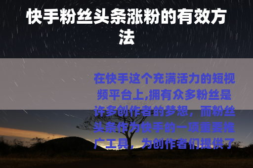 在快手这个充满活力的短视频平台上,拥有众多粉丝是许多创作者的梦想,而粉丝头条作为快手的一项重要推广工具,为创作者们提供了一个增加粉丝的有效途径。