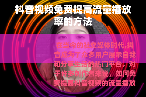 通过以上这些方法的综合运用,你就有机会在抖音上免费提高视频的流量播放率,让更多的人看到你的精彩内容,从而在这个充满活力的平台上获得更多的关注和认可,不断学习和尝试新的方法,根据自己的账号特点和受众需求进行调整和优化,相信你在抖音上的创作之路会越来越顺利。