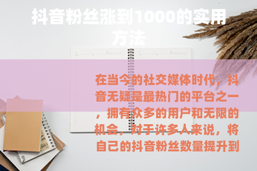 通过以上这些方法的持续实践和努力,相信你在抖音上的粉丝数量能够逐渐增长到1000,甚至更多,从而在这个充满机遇的平台上实现自己的价值和目标。
