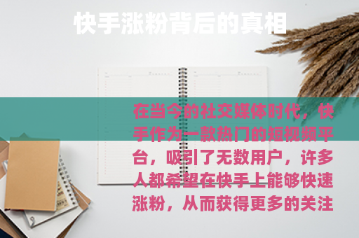 在当今的社交媒体时代,快手作为一款热门的短视频平台,吸引了无数用户,许多人都希望在快手上能够快速涨粉,从而获得更多的关注和机会,快手涨粉是真的吗?这是一个让众多用户十分关心的问题。