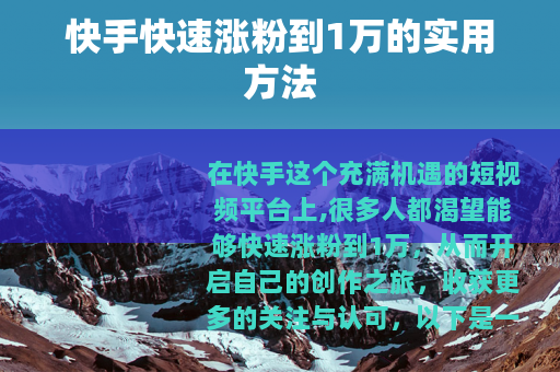 在快手这个充满机遇的短视频平台上,很多人都渴望能够快速涨粉到1万,从而开启自己的创作之旅,收获更多的关注与认可,以下是一些切实可行的方法,帮助你在快手上实现粉丝量的快速增长。