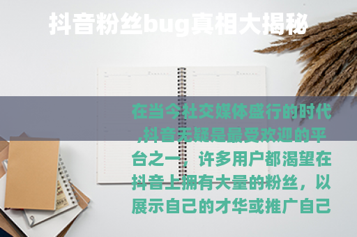 在当今社交媒体盛行的时代,抖音无疑是最受欢迎的平台之一,许多用户都渴望在抖音上拥有大量的粉丝,以展示自己的才华或推广自己的产品与服务,最近网络上流传着一些关于抖音粉丝bug的说法,引起了众多用户的关注和好奇。