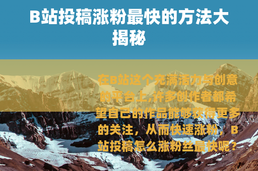 在B站这个充满活力与创意的平台上,许多创作者都希望自己的作品能够获得更多的关注,从而快速涨粉,B站投稿怎么涨粉丝最快呢?以下是一些实用的方法。 质量是关键,要确保你的投稿视频具有独特性和吸引力,无论是搞笑、知识科普、美食制作还是游戏攻略等各种类型,都要在内容上做到精益求精,在制作视频时,要注重画面的清晰度和稳定性,避免出现模糊、晃动或卡顿的情况,这样能给观众带来更好的观看体验,音频也要清晰,避免有杂音或音量过小过大等问题。 和封面的设计至关重要,一个吸引人的标题能够瞬间抓住用户的眼球,激发他们的好奇心,从而促使他们点击观看视频,标题要简洁明了,同时又能准确传达视频的核心内容,封面则要选择视频中最精彩、最有代表性的画面,并且通过一些图像处理软件进行适当的美化和加工,让封面更加美观、醒目。