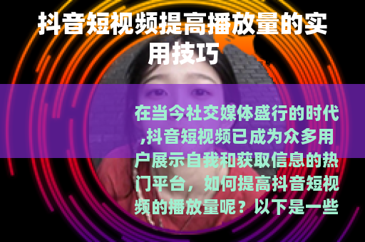 在当今社交媒体盛行的时代,抖音短视频已成为众多用户展示自我和获取信息的热门平台,如何提高抖音短视频的播放量呢?以下是一些实用的技巧。 质量是关键,要确保你的视频具有独特性和吸引力,可以从自身的兴趣、特长或当下热门话题中寻找灵感,制作出能引起观众共鸣的视频内容,如果你擅长烹饪,那么可以制作一系列精美的美食制作视频,详细展示每一个步骤和独特的烹饪技巧,让观众在观看的过程中不仅能学到知识,还能感受到美食的魅力。