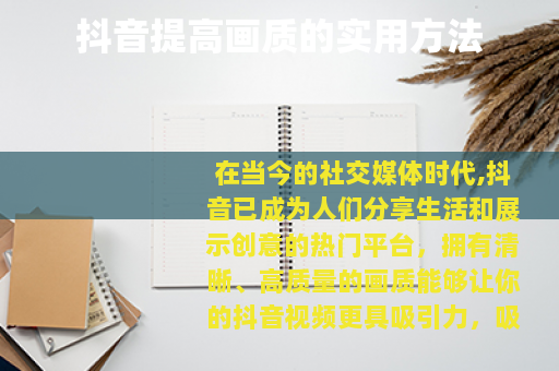 在当今的社交媒体时代,抖音已成为人们分享生活和展示创意的热门平台,拥有清晰、高质量的画质能够让你的抖音视频更具吸引力,吸引更多的关注和点赞,抖音怎样提高画质呢?以下是一些实用的方法。