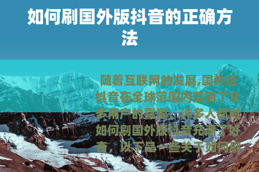 随着互联网的发展,国外版抖音在全球范围内受到了众多用户的喜爱,许多人都对如何刷国外版抖音充满了好奇,以下是一些关于如何刷国外版抖音的实用方法。