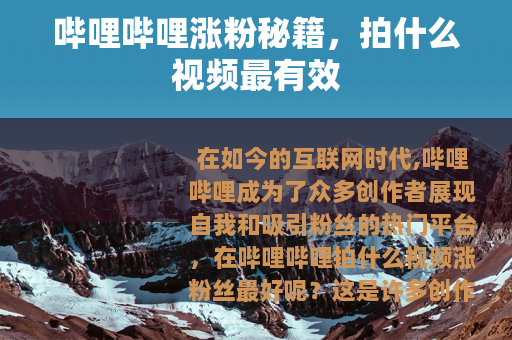 在如今的互联网时代,哔哩哔哩成为了众多创作者展现自我和吸引粉丝的热门平台,在哔哩哔哩拍什么视频涨粉丝最好呢?这是许多创作者都在思考的问题。
