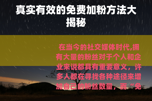 在当今的社交媒体时代,拥有大量的粉丝对于个人和企业来说都具有重要意义,许多人都在寻找各种途径来增加自己的粉丝数量,而“免费加粉神器 100%活粉”这样的说法也常常吸引着大家的目光。