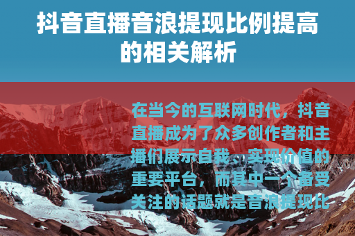 在当今的互联网时代,抖音直播成为了众多创作者和主播们展示自我、实现价值的重要平台,而其中一个备受关注的话题就是音浪提现比例,抖音直播音浪提现比例提高这一消息引起了广泛的热议。