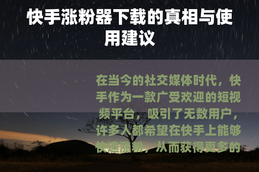 在当今的社交媒体时代,快手作为一款广受欢迎的短视频平台,吸引了无数用户,许多人都希望在快手上能够快速涨粉,从而获得更多的关注和机会,而“快手涨粉器下载”也因此成为了一个热门的话题。