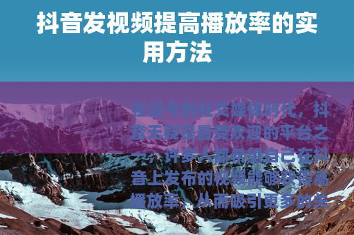 在当今的社交媒体时代,抖音无疑是最受欢迎的平台之一,许多人都希望自己在抖音上发布的视频能够获得高播放率,从而吸引更多的关注和粉丝,以下是一些抖音怎么发视频提高播放率的方法。 是关键,要确保你的视频内容具有吸引力和独特性,可以从热门话题中寻找灵感,但要加入自己的创意和观点,让观众在众多类似的视频中能够眼前一亮,如果你擅长烹饪,那么可以制作一些独特的美食制作视频,展示一些新颖的食谱或独特的烹饪技巧。