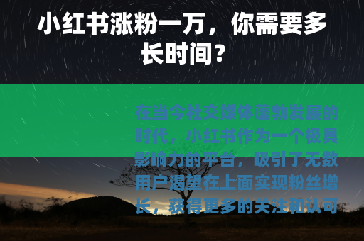 在当今社交媒体蓬勃发展的时代,小红书作为一个极具影响力的平台,吸引了无数用户渴望在上面实现粉丝增长,获得更多的关注和认可,在小红书上涨一万粉,究竟需要多久呢?