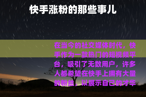 在当今的社交媒体时代,快手作为一款热门的短视频平台,吸引了无数用户,许多人都希望在快手上拥有大量的粉丝,以展示自己的才华、分享生活点滴或者推广自己的产品和服务,市场上出现了各种各样声称可以帮助快手涨粉的网站,而且价格还很便宜,这让不少人动了心。