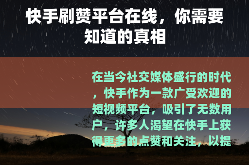 在当今社交媒体盛行的时代,快手作为一款广受欢迎的短视频平台,吸引了无数用户,许多人渴望在快手上获得更多的点赞和关注,以提升自己的影响力和知名度,一些所谓的快手刷赞平台在线应运而生。