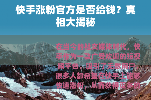 在当今的社交媒体时代,快手作为一款广受欢迎的短视频平台,吸引了无数用户,很多人都希望在快手上能够快速涨粉,从而获得更多的关注和机会,一个备受关注的问题就来了:快手涨粉官方给钱吗?