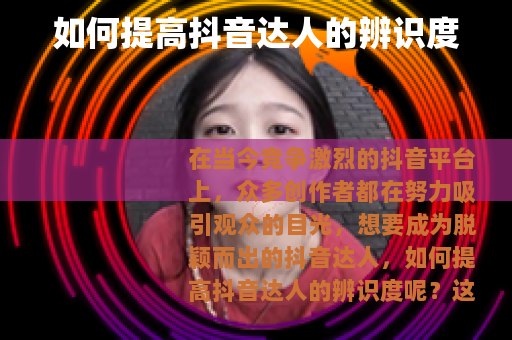 要提高抖音达人的辨识度,需要从个人风格、内容领域、视频制作质量以及与粉丝互动等多方面入手,不断努力和创新,才能在抖音的海洋中打造出属于自己的独特标识,吸引更多的关注和喜爱,成为真正具有高辨识度的抖音达人。