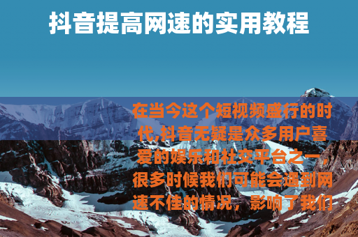 在当今这个短视频盛行的时代,抖音无疑是众多用户喜爱的娱乐和社交平台之一,很多时候我们可能会遇到网速不佳的情况,影响了我们在抖音上的观看和创作体验,就来给大家分享一些抖音提高网速的教程。