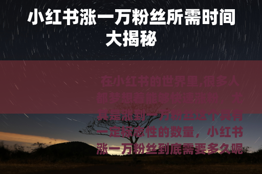 在小红书的世界里,很多人都梦想着能够快速涨粉,尤其是涨到一万粉丝这个具有一定标志性的数量,小红书涨一万粉丝到底需要多久呢?