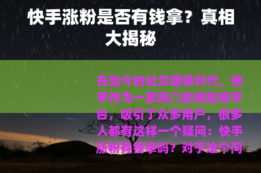 在当今的社交媒体时代,快手作为一款热门的短视频平台,吸引了众多用户,很多人都有这样一个疑问:快手涨粉有钱拿吗?