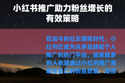 在当今的社交媒体时代,小红书已成为众多品牌和个人推广的热门平台,越来越多的人希望通过小红书推广来增加自己的粉丝数量,进而提升影响力和商业价值,如何在小红书上实现粉丝的有效增长呢?