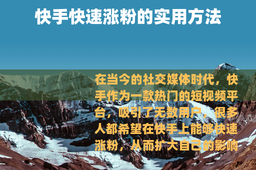 在当今的社交媒体时代,快手作为一款热门的短视频平台,吸引了无数用户,很多人都希望在快手上能够快速涨粉,从而扩大自己的影响力和社交圈,以下是一些快手怎样涨粉丝比较快的有效方法。