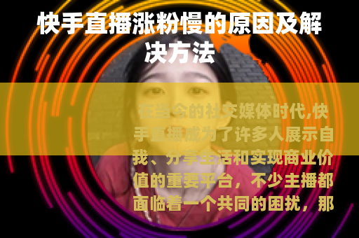 在当今的社交媒体时代,快手直播成为了许多人展示自我、分享生活和实现商业价值的重要平台,不少主播都面临着一个共同的困扰,那就是快手直播涨粉太慢了,这一问题不仅影响了主播们的积极性,也在一定程度上限制了他们在平台上的发展,究竟是什么原因导致快手直播涨粉缓慢呢? 质量是关键因素之一,如果直播内容缺乏吸引力、创新性和实用性,观众很可能在进入直播间后不久就会离开,更不用说关注主播了,一些主播的直播内容过于单调,只是简单地聊天或展示商品,没有给观众带来足够的价值和乐趣,相反,那些能够提供有趣的故事、专业的知识讲解或独特的才艺表演的主播,往往更容易吸引观众的关注并获得粉丝。