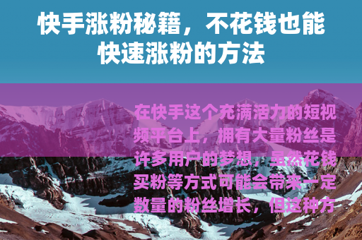 在快手这个充满活力的短视频平台上,拥有大量粉丝是许多用户的梦想,虽然花钱买粉等方式可能会带来一定数量的粉丝增长,但这种方式并不长久且可能存在诸多弊端,有很多不花钱就能在快手上快速涨粉的有效方法。