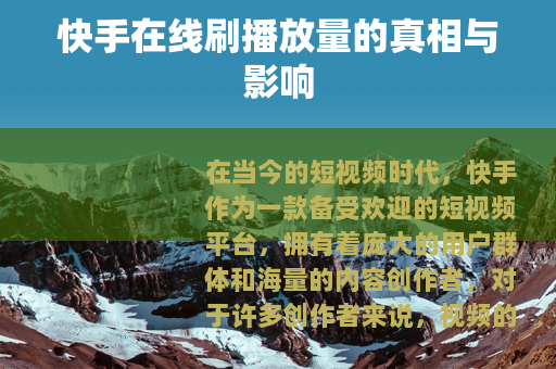 在当今的短视频时代,快手作为一款备受欢迎的短视频平台,拥有着庞大的用户群体和海量的内容创作者,对于许多创作者来说,视频的播放量是衡量其作品受欢迎程度和影响力的重要指标之一,在追求高播放量的过程中,出现了一种现象——快手在线刷播放量。