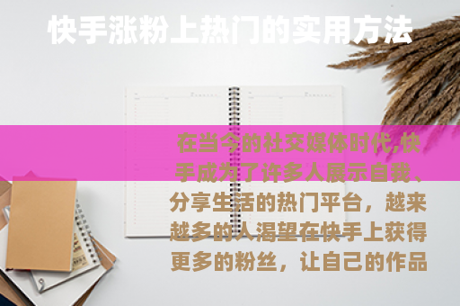 在当今的社交媒体时代,快手成为了许多人展示自我、分享生活的热门平台,越来越多的人渴望在快手上获得更多的粉丝,让自己的作品上热门,从而提升自己的影响力和知名度,快手怎么涨粉丝上热门呢?以下是一些实用的方法。