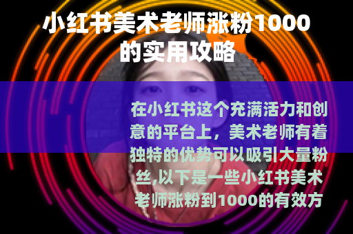 在小红书这个充满活力和创意的平台上,美术老师有着独特的优势可以吸引大量粉丝,以下是一些小红书美术老师涨粉到1000的有效方法。