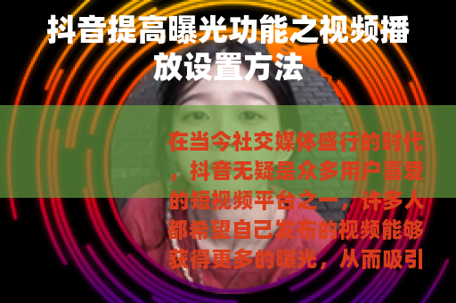 在当今社交媒体盛行的时代,抖音无疑是众多用户喜爱的短视频平台之一,许多人都希望自己发布的视频能够获得更多的曝光,从而吸引更多的关注和粉丝,抖音提高曝光功能中的视频播放设置是怎样的呢?