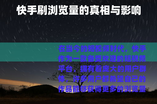 在当今的短视频时代,快手作为一款备受欢迎的短视频平台,拥有着庞大的用户群体,许多用户都希望自己的作品能够获得更多的浏览量,从而获得更多的关注和认可,在这个过程中,出现了一种所谓的“快手刷浏览量”的现象,值得我们深入探讨。