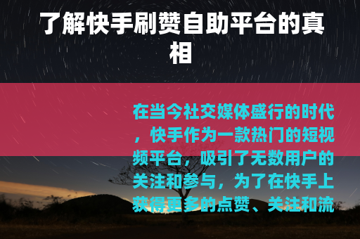 在当今社交媒体盛行的时代,快手作为一款热门的短视频平台,吸引了无数用户的关注和参与,为了在快手上获得更多的点赞、关注和流量,一些所谓的快手刷赞自助平台应运而生。