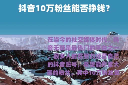 在当今的社交媒体时代,抖音无疑是最热门的平台之一,很多人都在努力经营自己的抖音账号,希望能积累大量的粉丝,其中10万粉丝更是许多人追求的一个目标,抖音10万粉丝能挣钱吗?