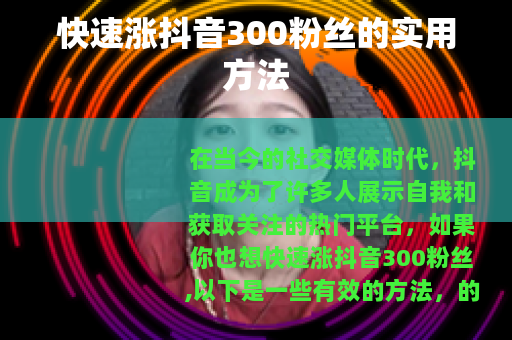 在当今的社交媒体时代,抖音成为了许多人展示自我和获取关注的热门平台,如果你也想快速涨抖音300粉丝,以下是一些有效的方法。