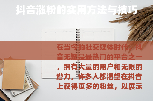 在当今的社交媒体时代,抖音无疑是最热门的平台之一,拥有大量的用户和无限的潜力,许多人都渴望在抖音上获得更多的粉丝,以展示自己的才华、分享生活点滴或推广自己的产品与服务,抖音怎么涨粉丝呢?以下是一些实用的方法与技巧。