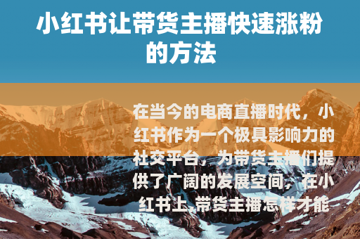 在当今的电商直播时代,小红书作为一个极具影响力的社交平台,为带货主播们提供了广阔的发展空间,在小红书上,带货主播怎样才能实现涨粉快的目标呢?