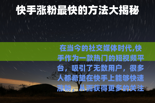 快手涨粉最快的方法大揭秘
