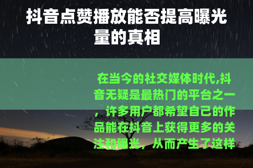 在当今的社交媒体时代,抖音无疑是最热门的平台之一,许多用户都希望自己的作品能在抖音上获得更多的关注和曝光,从而产生了这样一个疑问:抖音点赞播放能提高曝光量吗?这是真的吗?