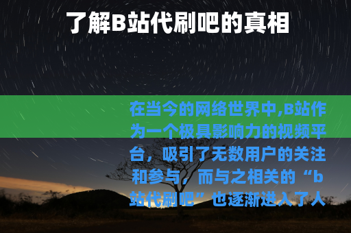 在当今的网络世界中,B站作为一个极具影响力的视频平台,吸引了无数用户的关注和参与,而与之相关的“b站代刷吧”也逐渐进入了人们的视野。