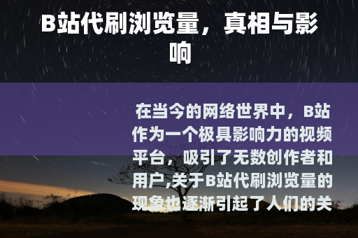 在当今的网络世界中,B站作为一个极具影响力的视频平台,吸引了无数创作者和用户,关于B站代刷浏览量的现象也逐渐引起了人们的关注。