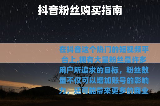 要明确的是,抖音官方是不支持购买粉丝这种行为的,因为这可能会破坏平台的公平性和生态环境,在一些非官方的渠道中,确实存在所谓的粉丝购买服务。