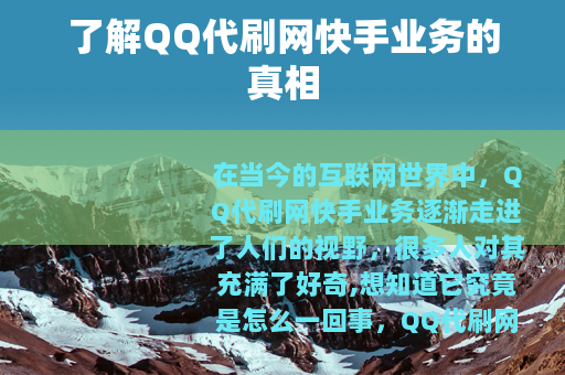 在当今的互联网世界中,QQ代刷网快手业务逐渐走进了人们的视野,很多人对其充满了好奇,想知道它究竟是怎么一回事。