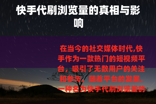 在当今的社交媒体时代,快手作为一款热门的短视频平台,吸引了无数用户的关注和参与,随着平台的发展,一种名为快手代刷浏览量的现象逐渐浮出水面,引起了人们的广泛讨论。