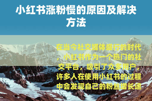 在当今社交媒体盛行的时代,小红书作为一个热门的社交平台,吸引了众多用户,许多人在使用小红书的过程中会发现自己的粉丝增长速度较为缓慢,这让他们感到困惑和苦恼,以下是一些导致小红书涨粉慢的常见原因以及相应的解决办法。 质量不高**