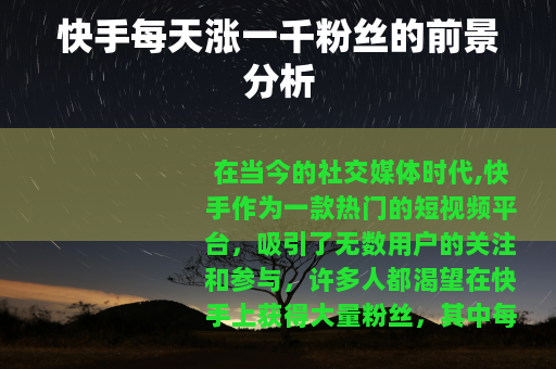 在当今的社交媒体时代,快手作为一款热门的短视频平台,吸引了无数用户的关注和参与,许多人都渴望在快手上获得大量粉丝,其中每天涨一千粉丝更是不少人的目标,快手每天涨一千粉丝的前景究竟如何呢?