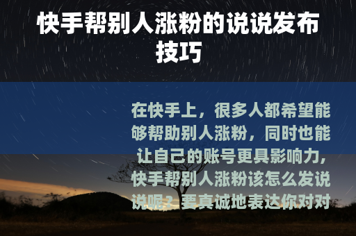 在快手上,很多人都希望能够帮助别人涨粉,同时也能让自己的账号更具影响力,快手帮别人涨粉该怎么发说说呢?