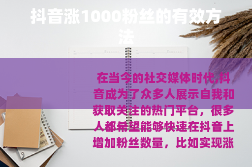 在当今的社交媒体时代,抖音成为了众多人展示自我和获取关注的热门平台,很多人都希望能够快速在抖音上增加粉丝数量,比如实现涨1000粉丝的目标,怎样才能做到呢?