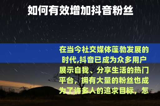 在当今社交媒体蓬勃发展的时代,抖音已成为众多用户展示自我、分享生活的热门平台,拥有大量的粉丝也成为了许多人的追求目标,怎样才能在抖音上吸引更多的粉丝呢?