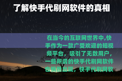 在当今的互联网世界中,快手作为一款广受欢迎的短视频平台,吸引了无数用户,一些所谓的快手代刷网软件也悄然出现。